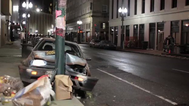 “The one thing that will go unnoticed,” suggests Wells, “is that we built the ground and sidewalk and rendered out an entirely 3D ground plane. The only thing left in the original plate were cars in the background and everything else is 3D rendered. We even had to rotate different pieces of the car around to look like it did crash and break, and we added dynamics to the top and bottom to integrate the first and second plate. It’s funny – our reaction when we saw the shots was, ‘Oh man, that’s going to be hard, that’s awesome!’”