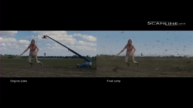 The telekinesis shots began as an anti-gravity effect but soon morphed into rising pieces of dust, soil and pieces of cane. “They really wanted to have a visible progression leading up to the climax in the shots,” says ScanlineVFX CG supervisor Ivo Klaus. “Debris, dust and greenery was supposed to whip across the screen with more and more force until the unbelievable happens and everything quiets down again.”